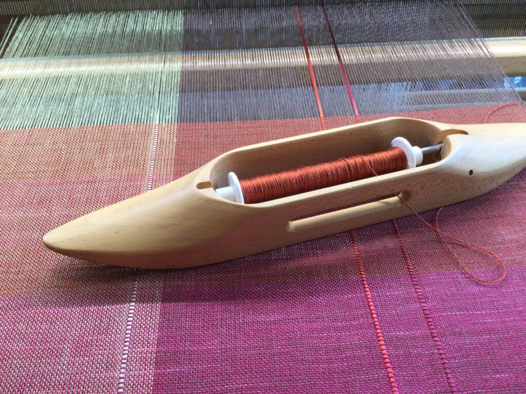 On my loom…by kimmckennaNovember 22, 2025November 22, 20252 Comments So far, so good. Fingers crossed the silk ribbon will behave when it comes to finishing the fabric. 2 thoughts on “On my loom…” Marge Gray November 22, 2025 at 1:46 pm Reply Looks lovely. I hope you show us the finished product. kimmckenna November 22, 2025 at 3:44 pm Reply I sure will. It should be off the loom in a week or two. Cheers! Leave a Reply Cancel replyYour email address will not be published. Required fields are marked *Name * Email * Website Comment * Save my name, email, and website in this browser for the next time I comment. Δ This site uses Akismet to reduce spam. Learn how your comment data is processed. previousHUESPUN FIBERWORKSnextHow I Dress My Distaff